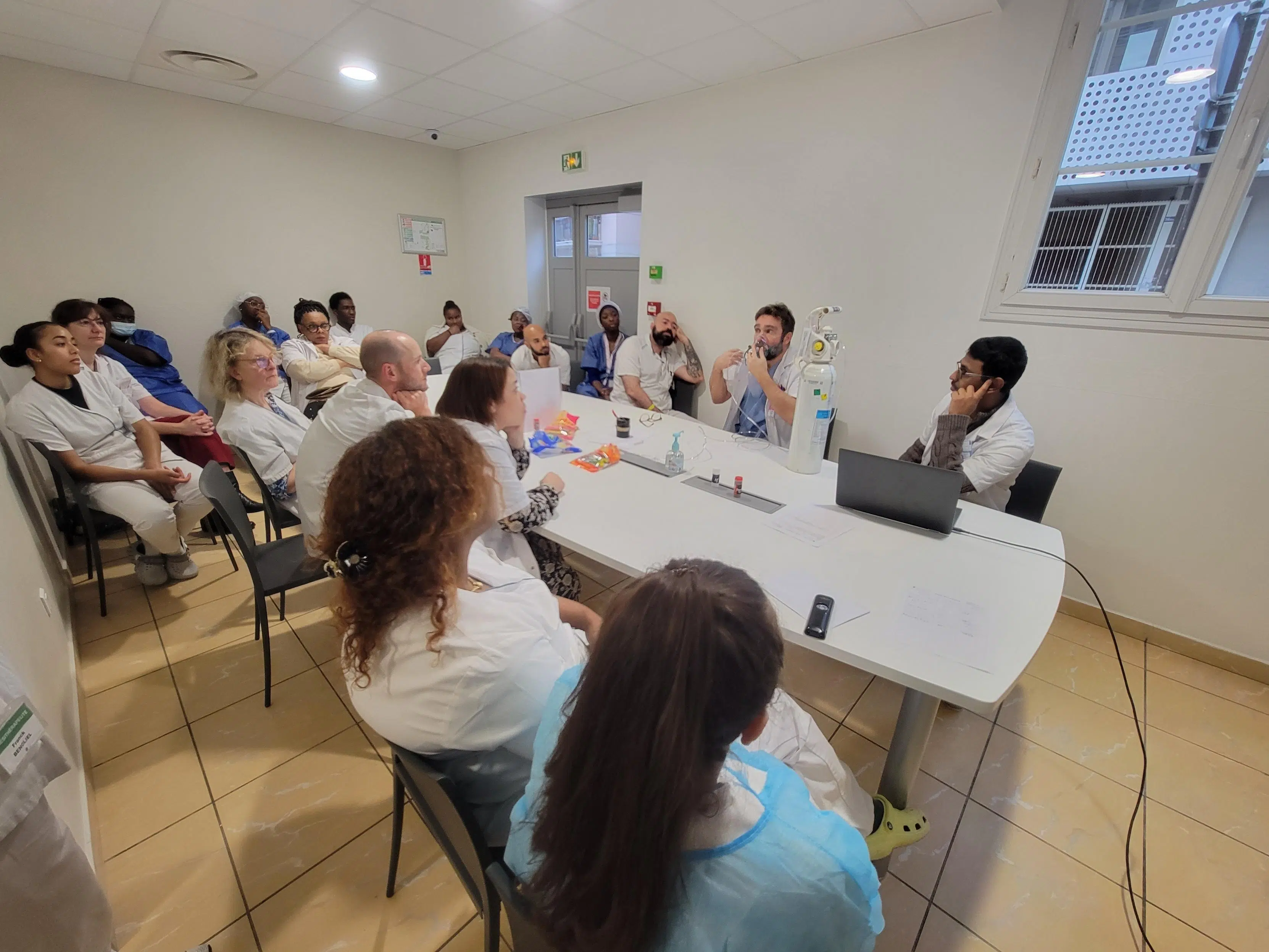 Le Dr Mathieu, président du CLAN, a réuni les équipes autour d’un atelier sur la question de la détection et de la prise en charge de la dénutrition. Ce moment d’échange a permis de partager des outils de dépistage, de discuter des dernières recommandations et de renforcer nos pratiques pour mieux identifier les patients à risque. L’objectif était d’améliorer la prise en charge globale des patients en veillant à ce que la nutrition soit intégrée dans le parcours de soins de manière proactive et systématique.