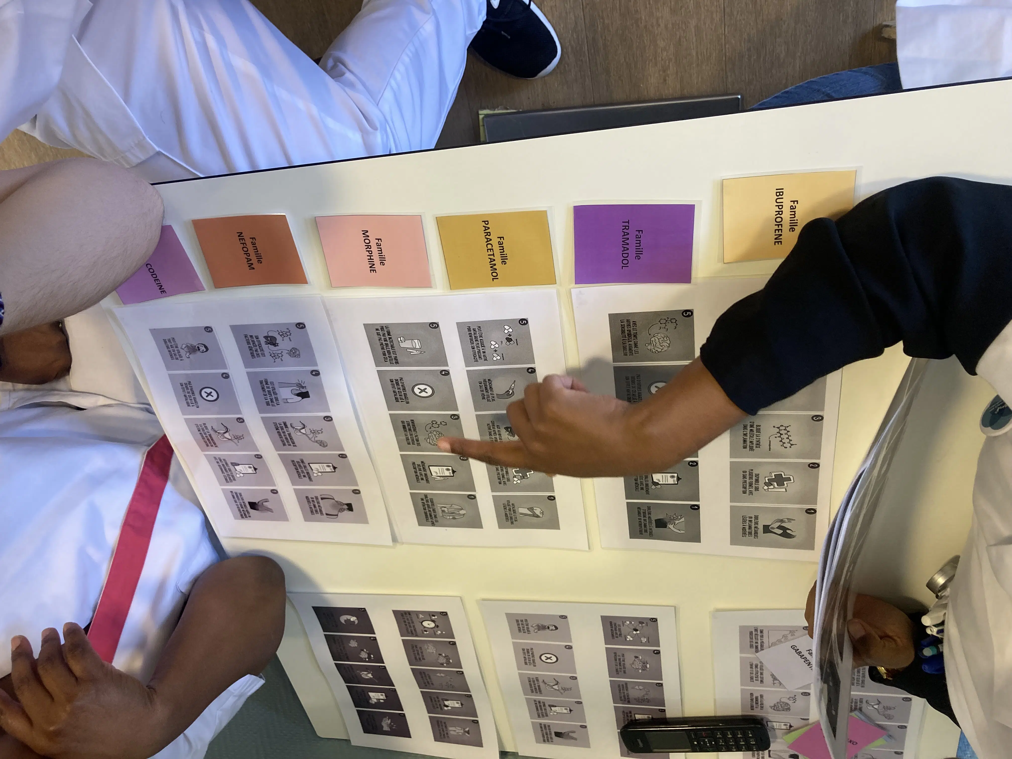 • Le second atelier, un jeu des 7 familles revisité autour des traitements antalgiques, s’adressait initialement aux professionnels, mais a également suscité l’intérêt de quelques patients et familles. À travers des définitions et indices, les participants devaient reconstituer les différentes classes d’antalgiques, de manière à mieux connaître leurs indications et spécificités.