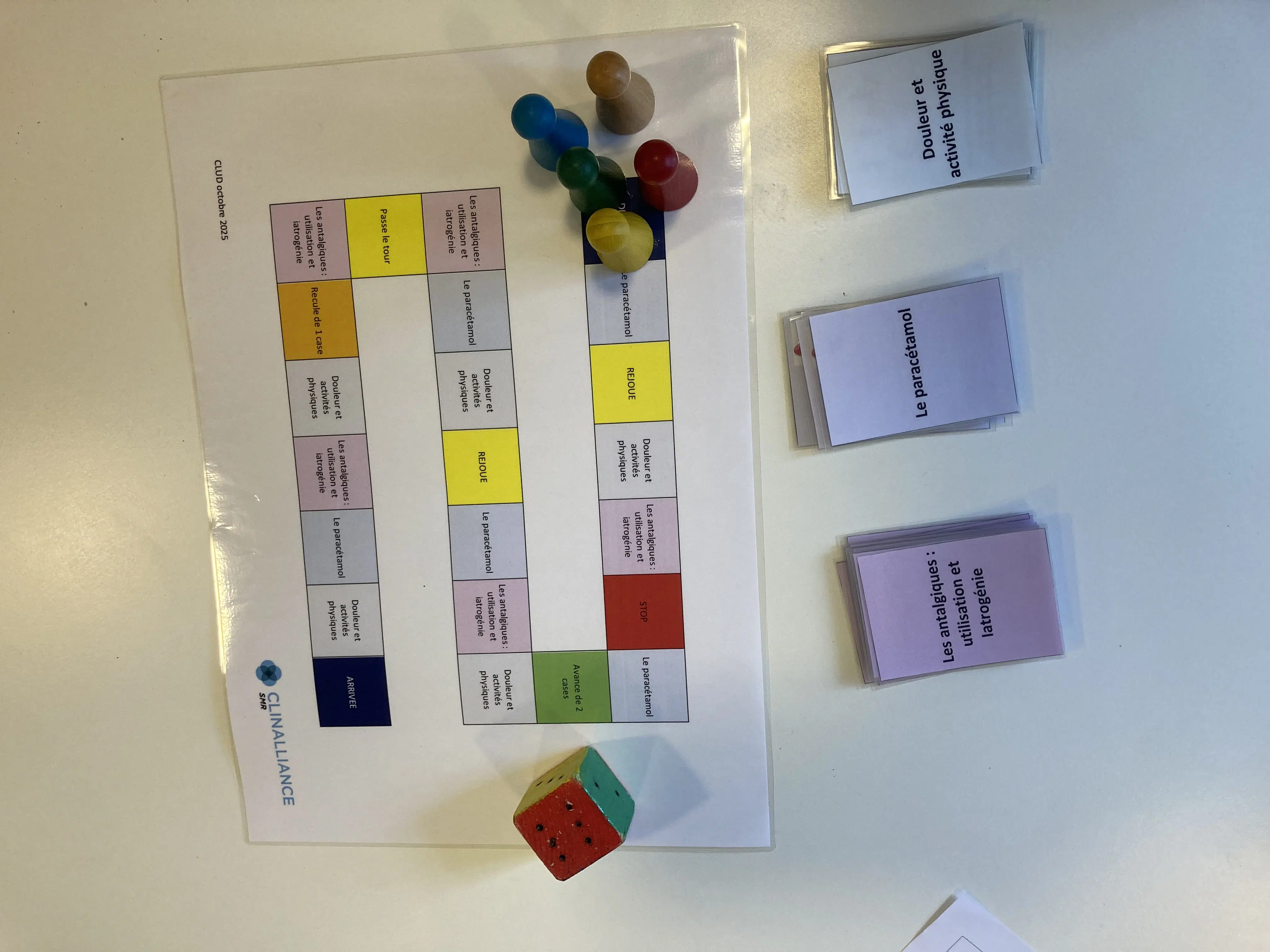 • Le premier atelier, sous la forme d’un jeu de l’oie, proposait trois thématiques : le paracétamol, la douleur et l’activité physique, et l’iatrogénie médicamenteuse. Au fil du jeu, les participants ont pu échanger librement sur les bons usages des traitements, les effets secondaires possibles et l’importance d’une communication claire entre soignants et patients. L’objectif : rendre chacun acteur de sa prise en charge et favoriser une meilleure compréhension de la douleur au quotidien.