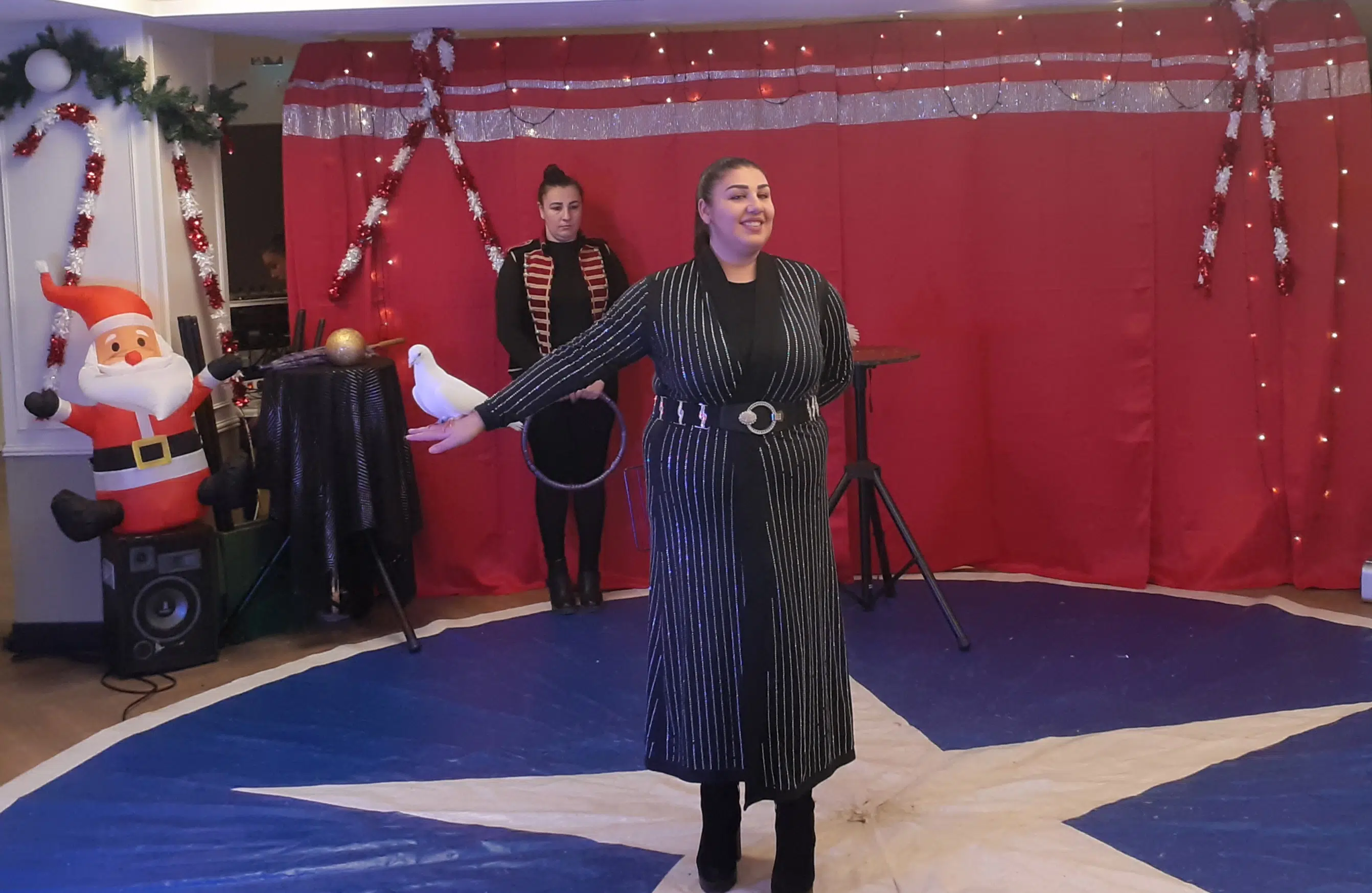 La particularité de ce spectacle ? La présence d’animaux talentueux : un chien, des colombes et même un chat ont participé aux numéros, provoquant applaudissements et étonnement chez les spectateurs.