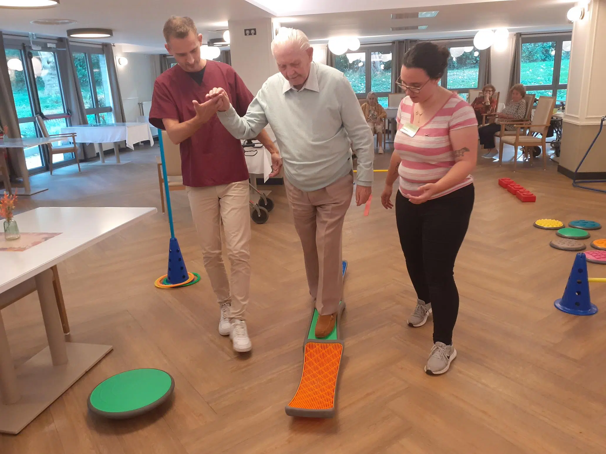 Côté activité physique, notre psychomotricien et notre kinésithérapeute ont uni leurs forces pour concevoir un grand parcours du combattant : un défi ludique et adapté, où les encouragements ont fusé tout au long de la séance.
