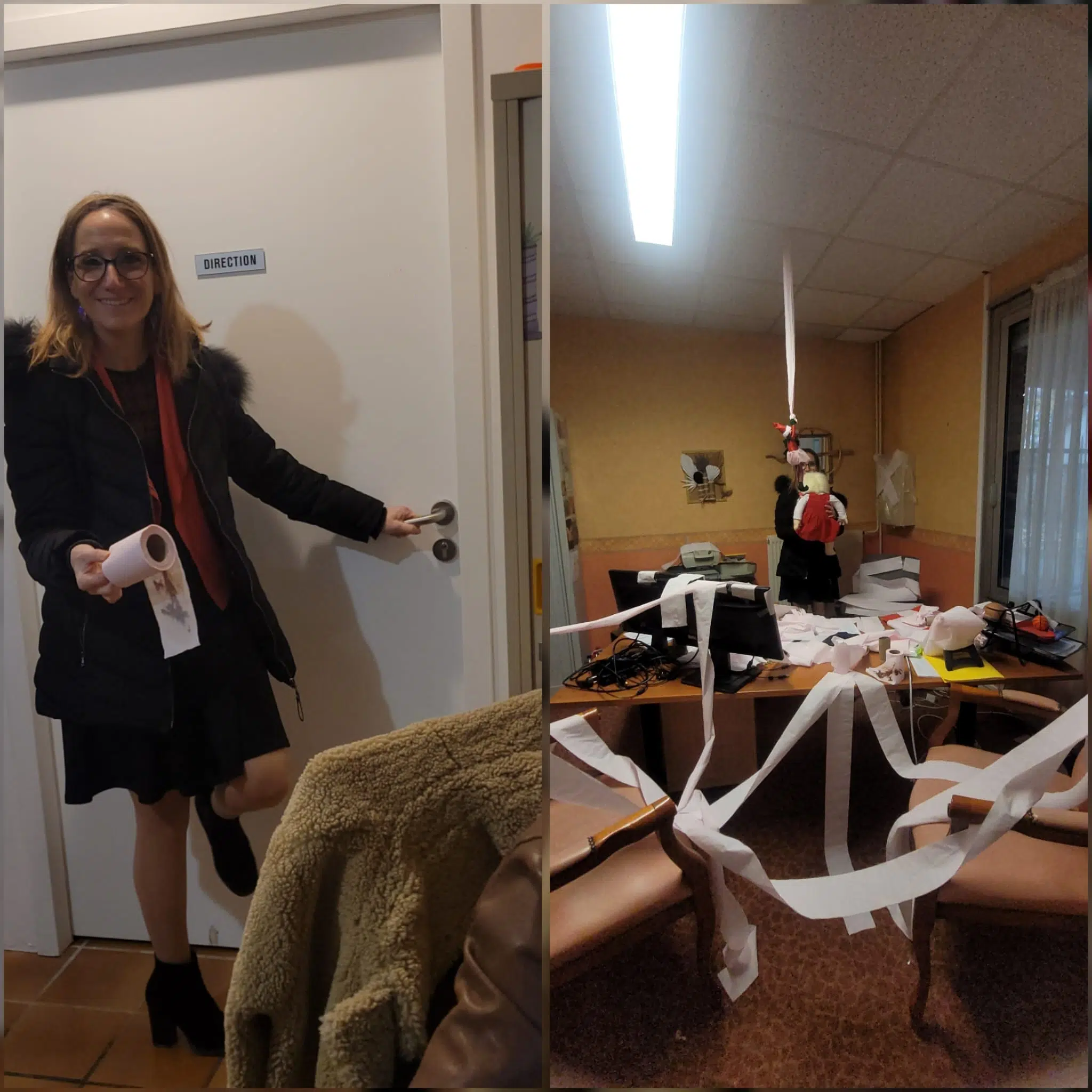 Chaque matin, les résidents découvrent avec enthousiasme pour découvrir la nouvelle bêtise imaginée par Zinzin. Depuis les premiers jours de décembre, il a redoublé de créativité :