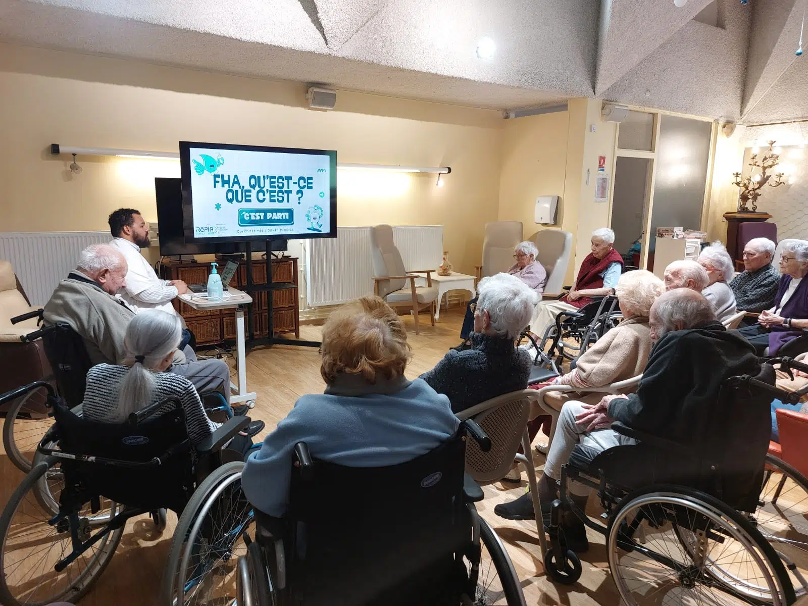 Enfin, le vendredi, notre résidence a combiné prévention et engagement solidaire. Dylan, cadre de santé, et Mélaine, psychomotricienne, ont animé un atelier de sensibilisation à la friction hydroalcoolique, rappelant les bons gestes d’hygiène des mains.