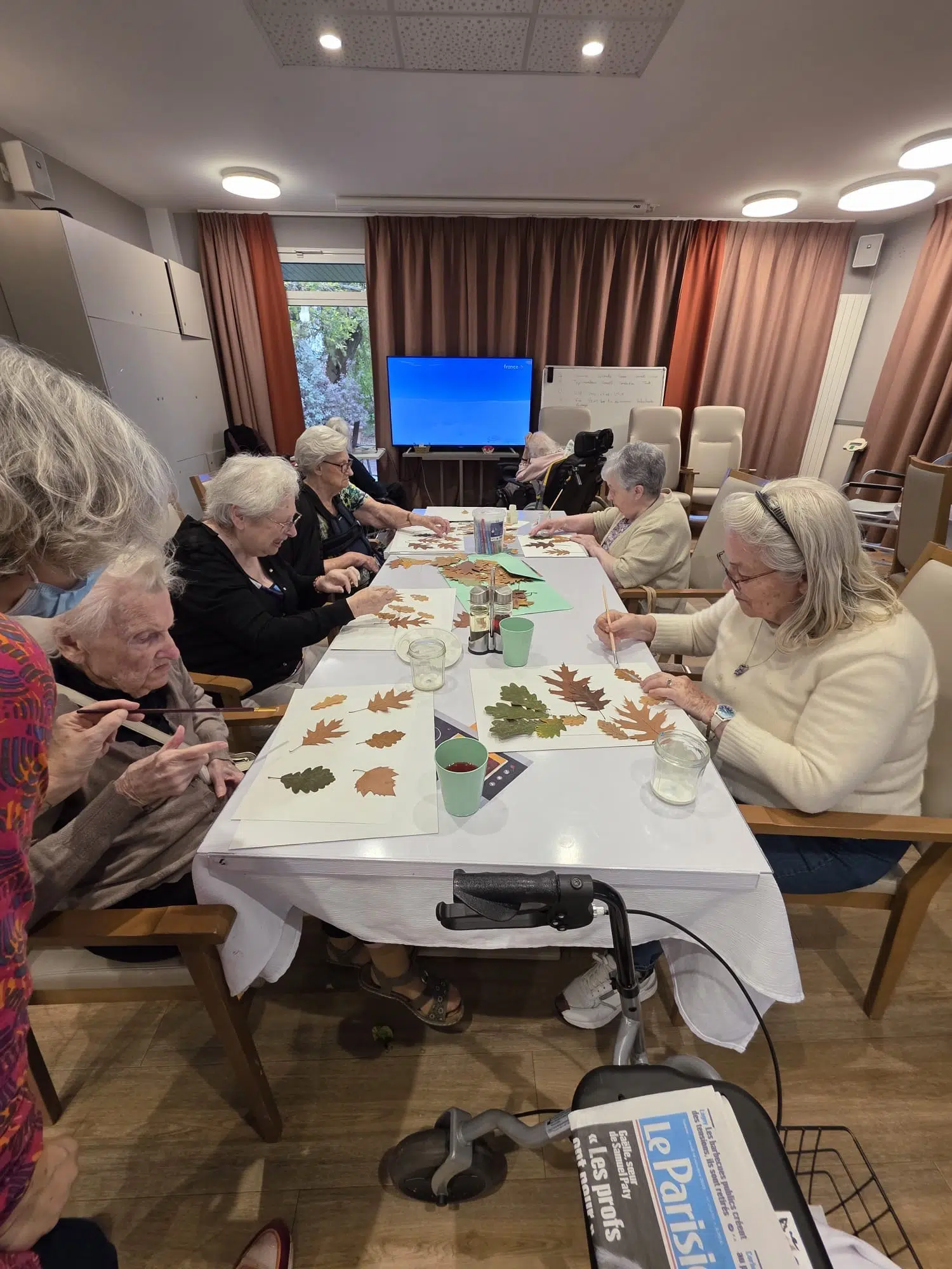 Côté loisirs créatifs, les résidents ont également pris part à la confection des décorations d’automne. Feuilles colorées, couronnes, citrouilles et petits tableaux aux tons orangés sont venus embellir la résidence, lui donnant une atmosphère chaleureuse et accueillante. Ce travail collectif a permis à chacun d’exprimer sa créativité tout en préparant la résidence à l’arrivée de la saison automnale.