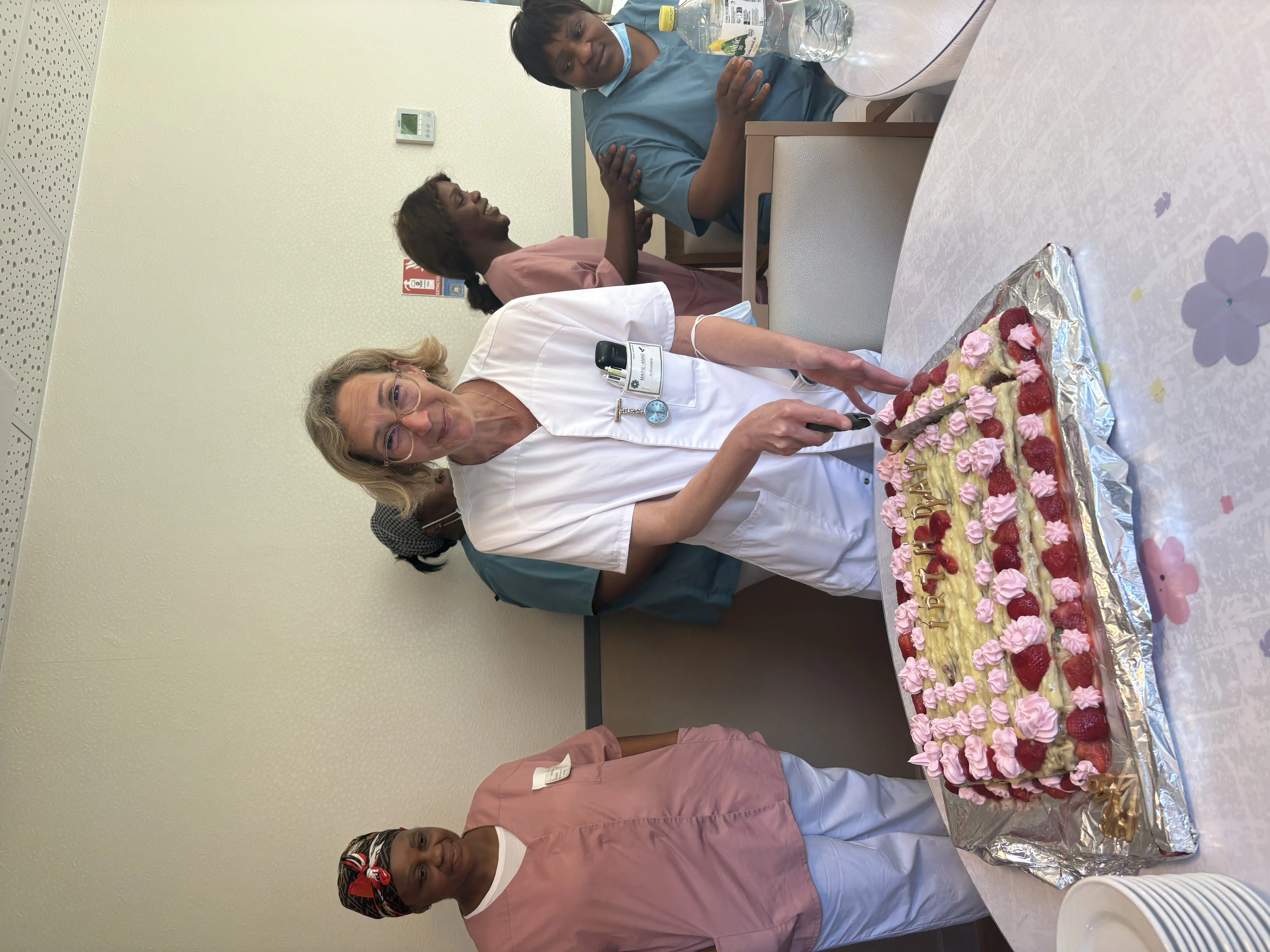 Pour marquer cette occasion spéciale, notre équipe de cuisine a réalisé un magnifique gâteau, spécialement conçu pour l’événement. Ce moment gourmand a permis de prolonger la célébration dans une atmosphère conviviale, où chacun a pu partager un instant privilégié autour de Marie-Anne.