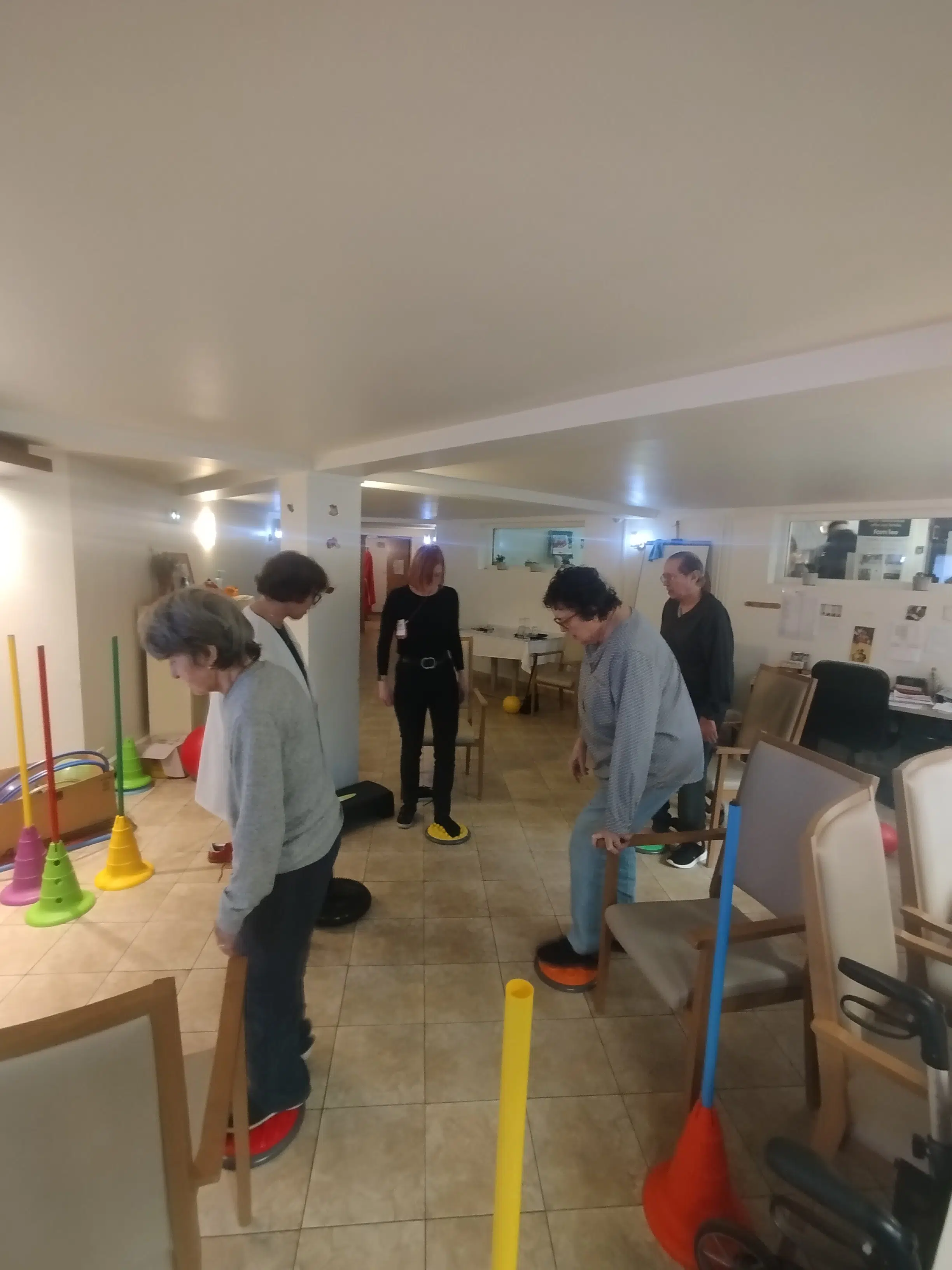 Le mercredi, place à la pratique avec des jeux d’adresse et une expérience de proprioception et d’équilibre animée par Catherine, notre ergothérapeute. Ces ateliers ont permis de mêler plaisir, motricité et prévention des chutes.