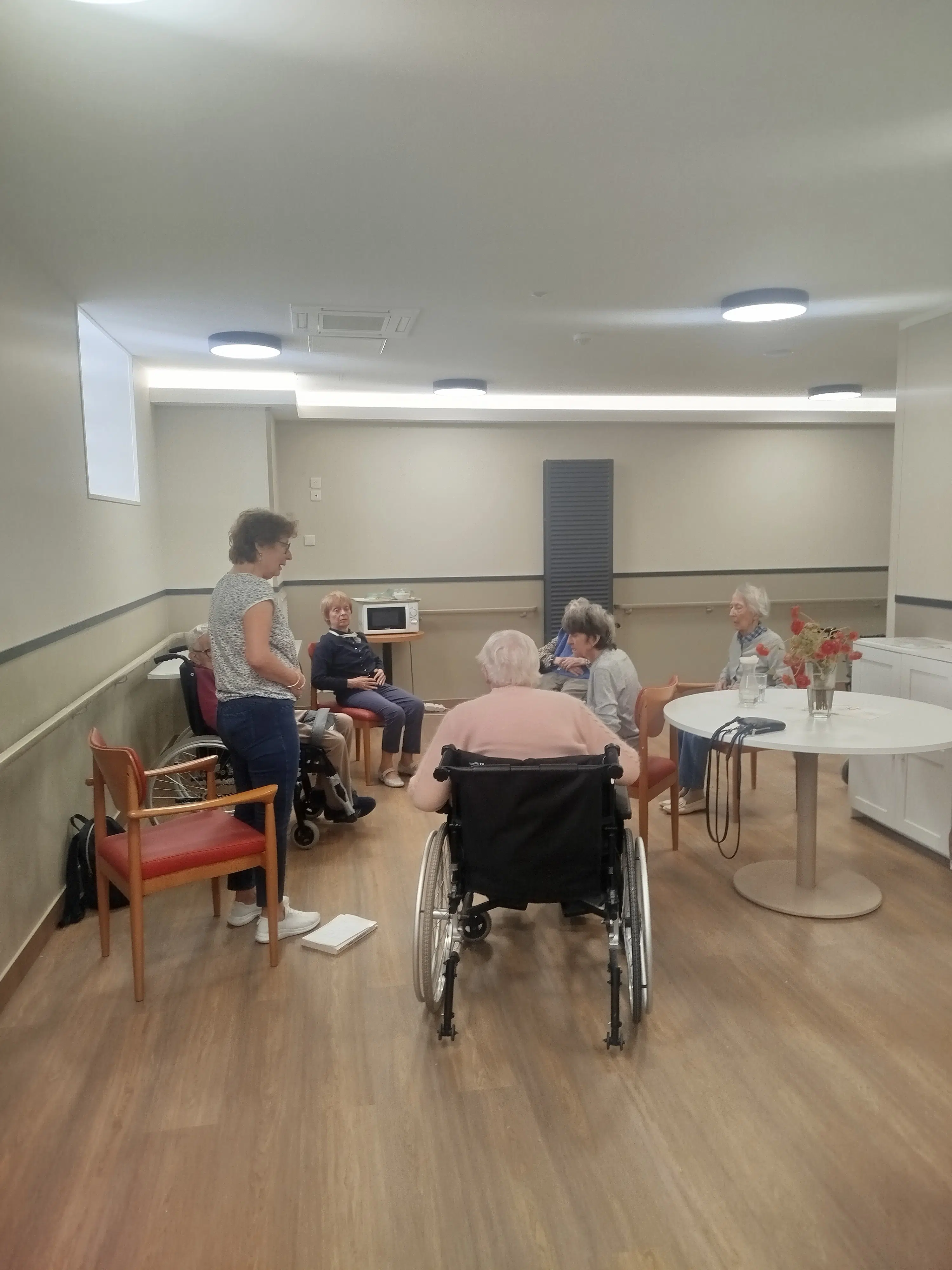 La semaine a débuté en douceur avec une séance de gymnastique adaptée, animée dans une ambiance bienveillante et détendue. Le même jour, les résidents ont eu le plaisir d’assister à un récital de piano donné par Hélène, pianiste professionnelle, qui a su charmer son auditoire avec un savant mélange de chansons françaises et d’airs d’opéra.